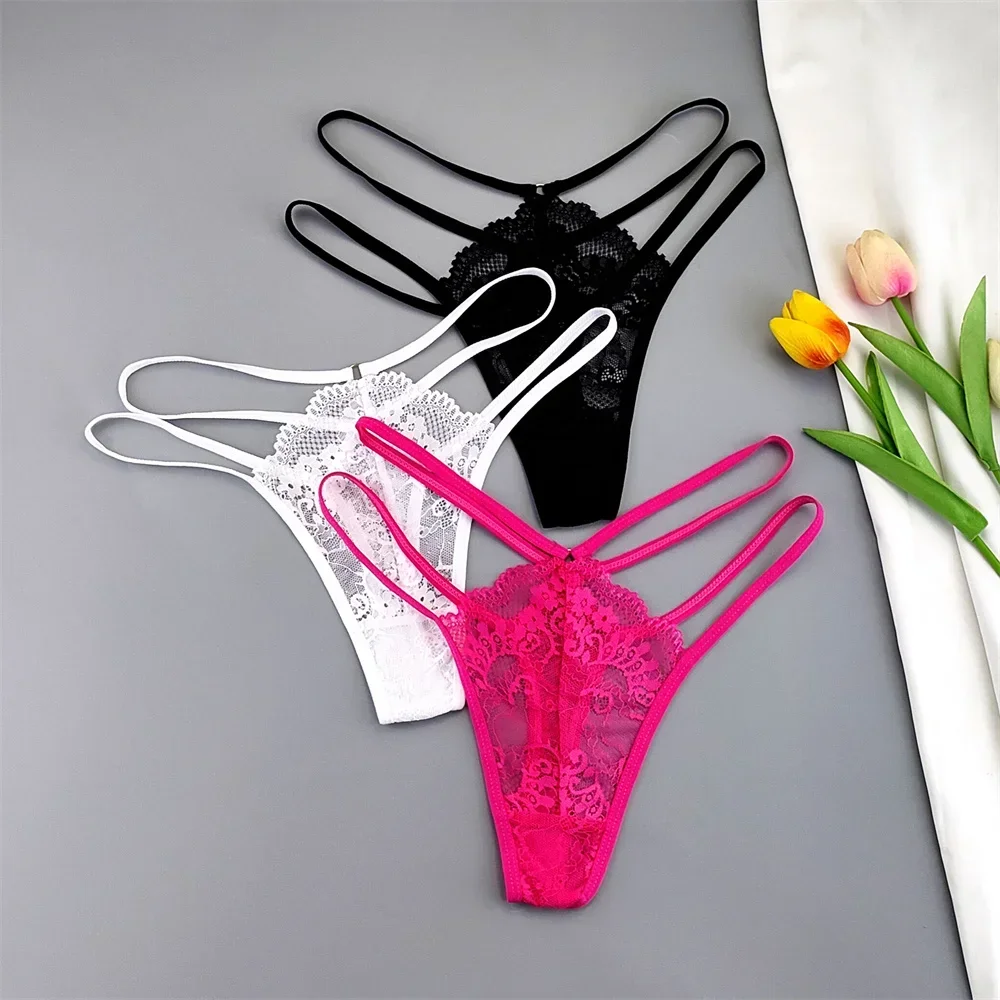 Home » Shop » 3 Pcs Lace Thin Strap Thong Women Low Waist Sexy Perspective Underwear Ladies Transparent G-string Panty Plus Size T-back