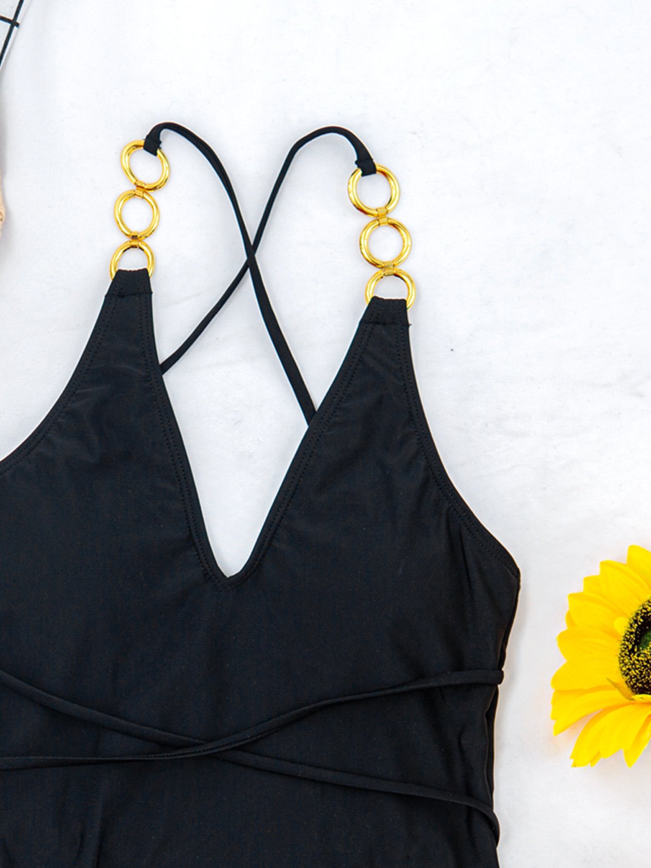Adjustable chest bikini with gold lock