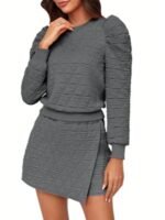 • What Material We Use: Embrace the essence of comfort with this women’s two-piece lounge wear set, skillfully crafted from a premium blend of fabrics. The ruffle long sleeve sweatshirt is made from a soft, breathable polyester mix, ensuring warmth without the weight