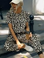 Be the first to review “Leopard Print Contrast Round Neck Loungewear & Sportswear Co-ord Set with Elastic Waist” Cancel reply