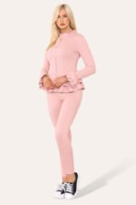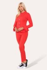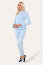 Long Sleeves Peplum Front Buttons Frilled Hem Lounge Wear Set