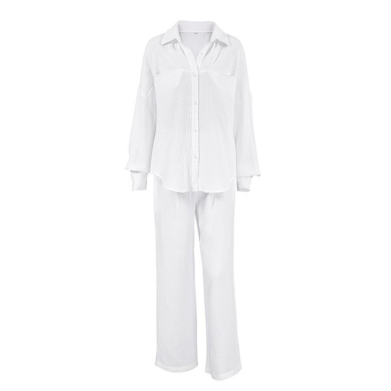 Designed for effortless relaxation, this  oversized lounge set  combines  comfort and functionality  with its  loose fit, chest pockets, and button-down design . Perfect for  lounging at home, running errands, or light outdoor activities .