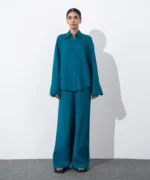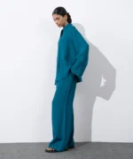 Step into elevated style with our Women’s Coord Set in Zinc, designed with a fashion-forward twist. This two-piece set pairs a shirt with exaggerated cuffs with matching trousers, creating a refined yet trendy silhouette.